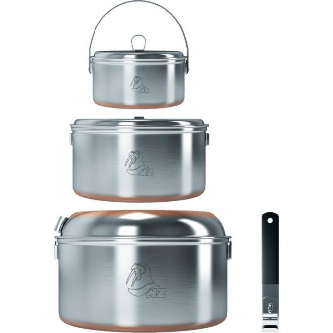Набор компактно складывается в самую большую кастрюлю и упаковывается в нейлоновый чехол.